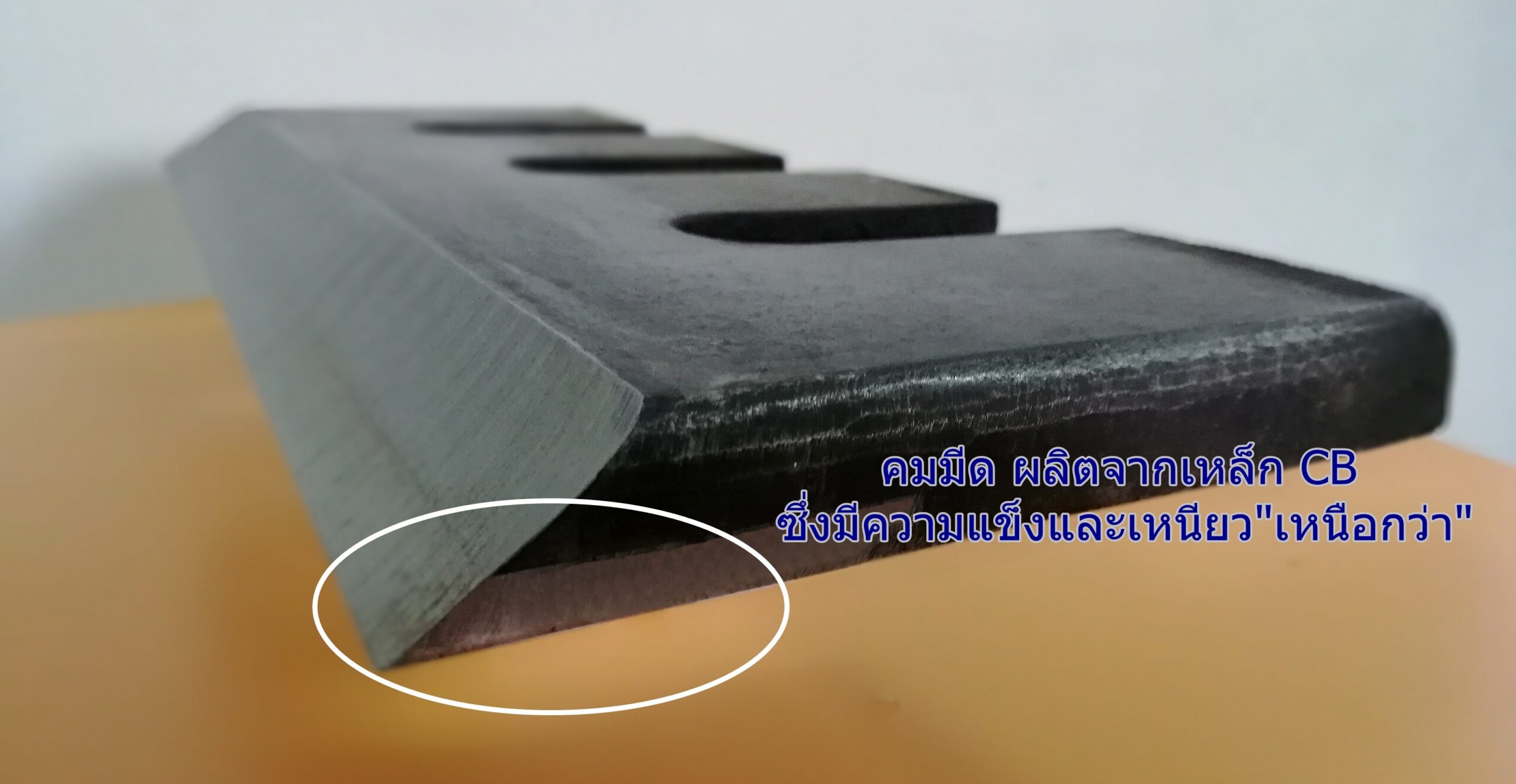 ใบมีดสับไม้ของเรา มีลักษณะเป็นใบประกบ(inlay) คมมีดผลิตจากเหล็ก cb เป็นเหล็กใบมีดที่มีความแข็งและเหนียว"เหนือกว่า"เหล็กใบมีดทั่วไป ซึ่งโดยปกติมักเป็น SKD11(DC53) หรือ A8